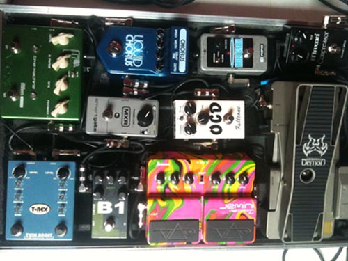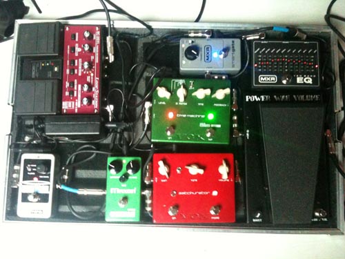 J'ai changé la Distorsion ( Satchurator de Joe Satriani) Par Celle de Steeve Vai ( La coloré ) qui elle à 2 distorsions avec deux réglages séparés , J'ai changé mon overdrive par La OCD de Fulltone , j'ai changé ma Pedale Wah Wah par la WEEPING Demon de chez Ibanez , J'ai changé l'équaliseur par le TWIN BOOST de chez T-Rex, ( Plus Simple et avec 2 boost en Plus) et j'ai ajouté un Compresseur et un Chorus et un accordeur car contrairement à la guitare de Steeve Vai, la Guibson se désacorde souvent !!.