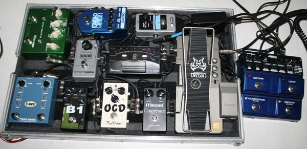 J'ai changé la Distorsion ( Satchurator de Joe Satriani) Par Celle de Steeve Vai ( La coloré ) qui elle à 2 distorsions avec deux réglages séparés , J'ai changé mon overdrive par La OCD de Fulltone , j'ai changé ma Pedale Wah Wah par la WEEPING Demon de chez Ibanez , J'ai changé l'équaliseur par le TWIN BOOST de chez T-Rex, ( Plus Simple et avec 2 boost en Plus) et j'ai ajouté un Compresseur et un Chorus et un accordeur car contrairement à la guitare de Steeve Vai, la Guibson se désacorde souvent !!.